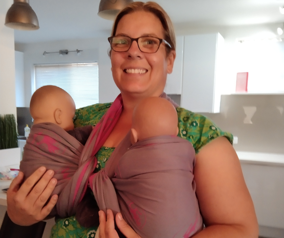 During my early parenting years, I used babywearing in a variety of ways that were beneficial for me and my children. With my first, I definitely wanted the closeness of babywearing to help with bonding after a premature birth, extended hospital stay and the failure of our breastfeeding relationship. But as my family grew, babywearing became very much a practical way of having four hands - one twin in a carrier, one twin in my right arm and my left hand to hold onto my toddler when I had three kids. Giant nappy bag balanced on a shoulder as well of course!
