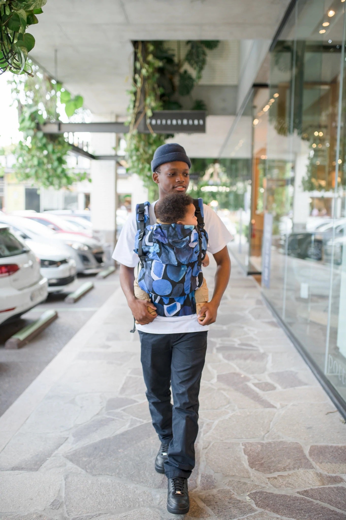 Beautiful blues in cool cotton, and just the right amount of padding for the wearer. Suitable for front carries from birth and back carries once baby is sitting independently. Adjustable to fit well to the baby and the wearer, and be ergonomic for both. Made from Australian designed fabric, and sewn in Tasmania.