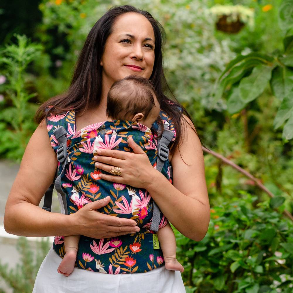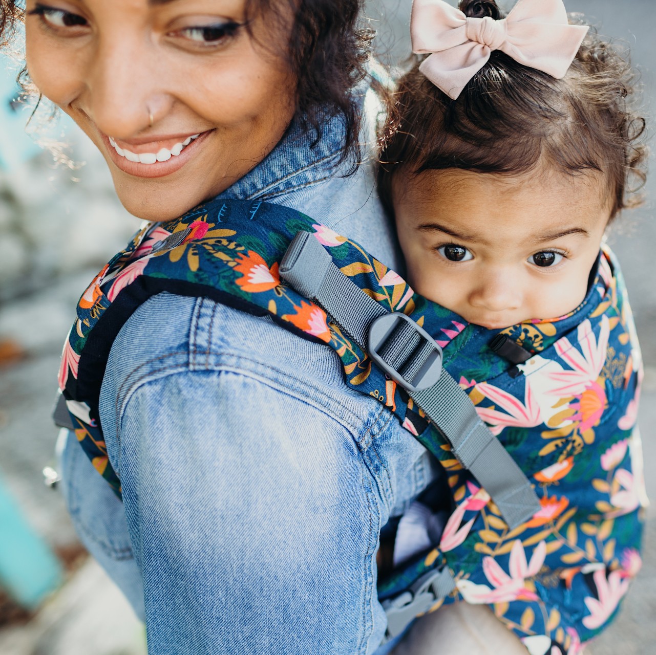 An ergonomic baby carrier that can be used from birth until toddlerhood, on the front and the back and comes in the most fabulous print!