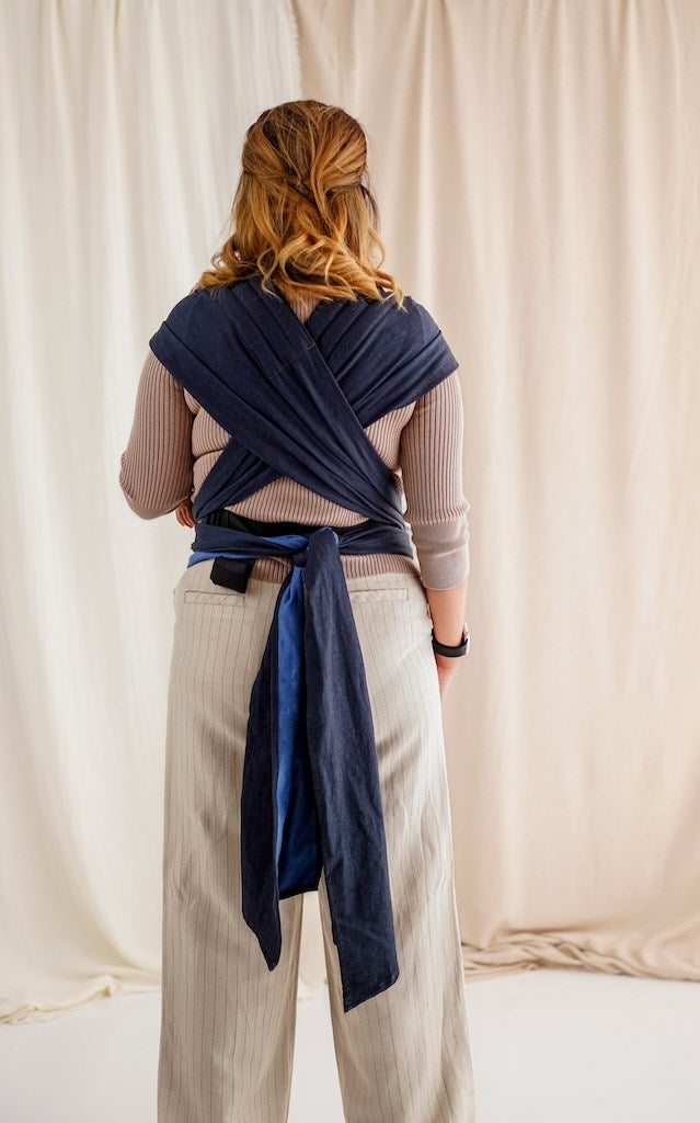 This ergonomic hybrid carrier reflects the effortless style of the Gisele Bundchen baby carrier seen in recent photos, featuring a modern denim look and a snug, supportive structure for both parent and baby.