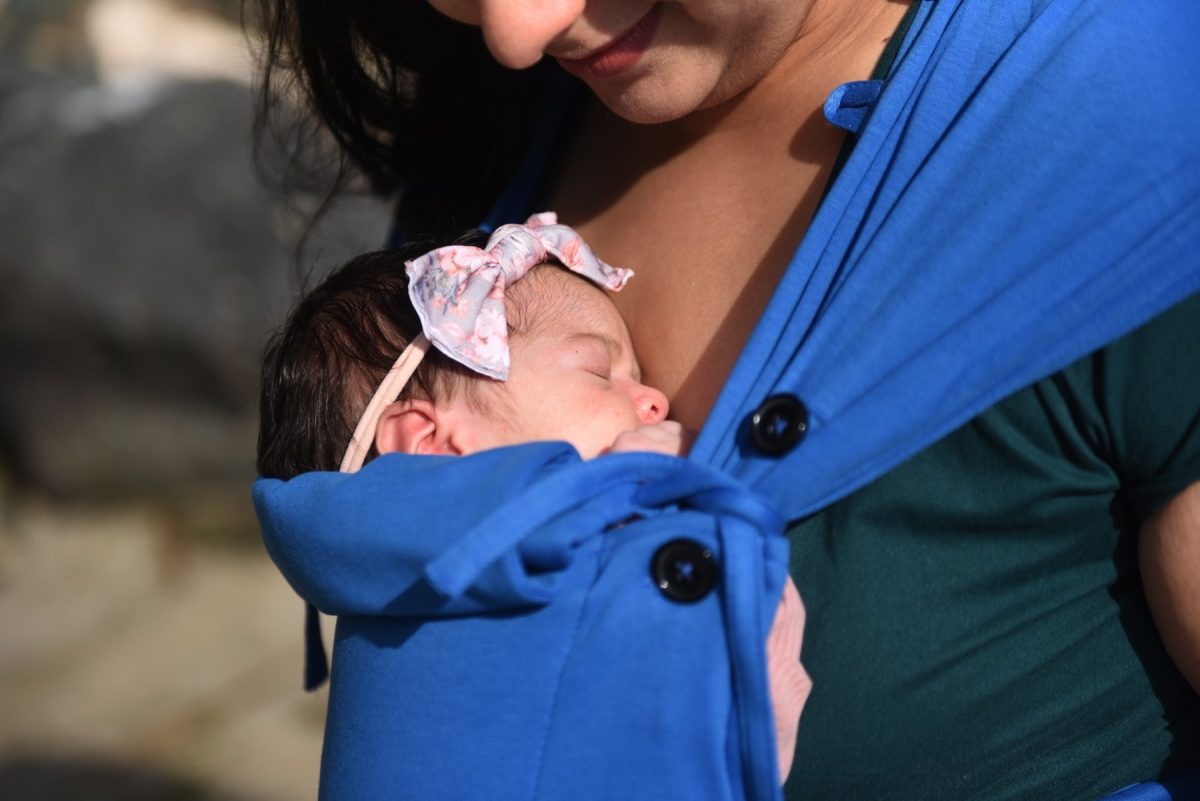 Innovative hybrid carrier from Neko Slings made out of stretchy wrap. Designed for little babies who have low birth weight. Neko Tiny was tested up until 15kg by independent labs.