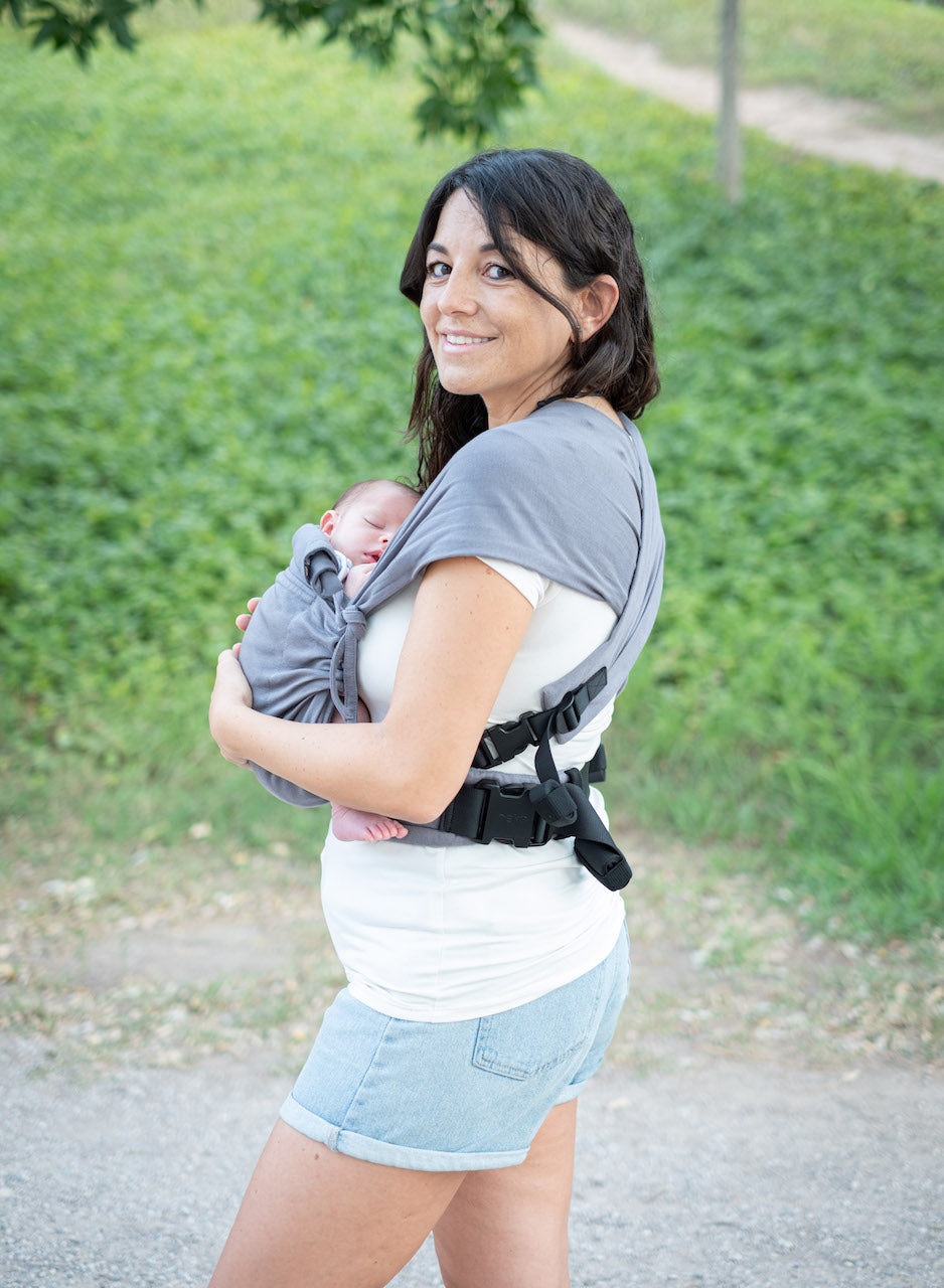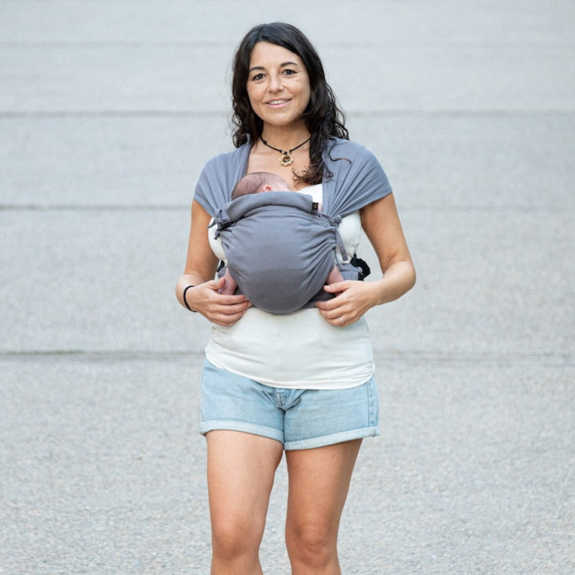 Innovative hybrid carrier from Neko Slings made out of stretchy wrap. Designed for little babies who have low birth weight. Neko Tiny was tested up until 15kg by independent labs.